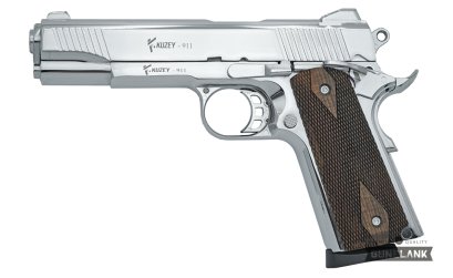 ปืนแบลงค์กันจำลอง 911 รุ่นใหม่จากตุรกี เงินเงาด้ามไม้แท้ ลำกล้อง 5 นิ้ว ไม่มีเครื่องหมายการค้าปลอมบนสไลด์หรือโครงปืน เราจำหน่ายภายใต้เครื่องหมายการค้าดั้งเดิมของ Kuzey (ระบบนิรภัยคันโยกใช้งานไม่ได้)